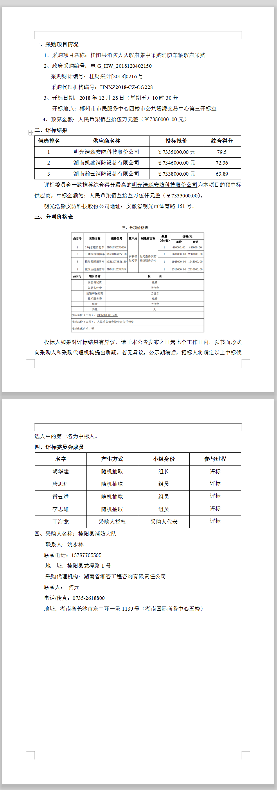 桂陽(yáng)縣消防大隊(duì)政府集中采購(gòu)消防車輛政府采購(gòu)中標(biāo)結(jié)果公示