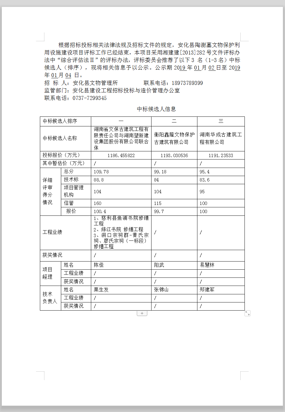 安化縣陶澍墓文物保護(hù)利用設(shè)施建設(shè)項(xiàng)目中標(biāo)候選人公示更正公告