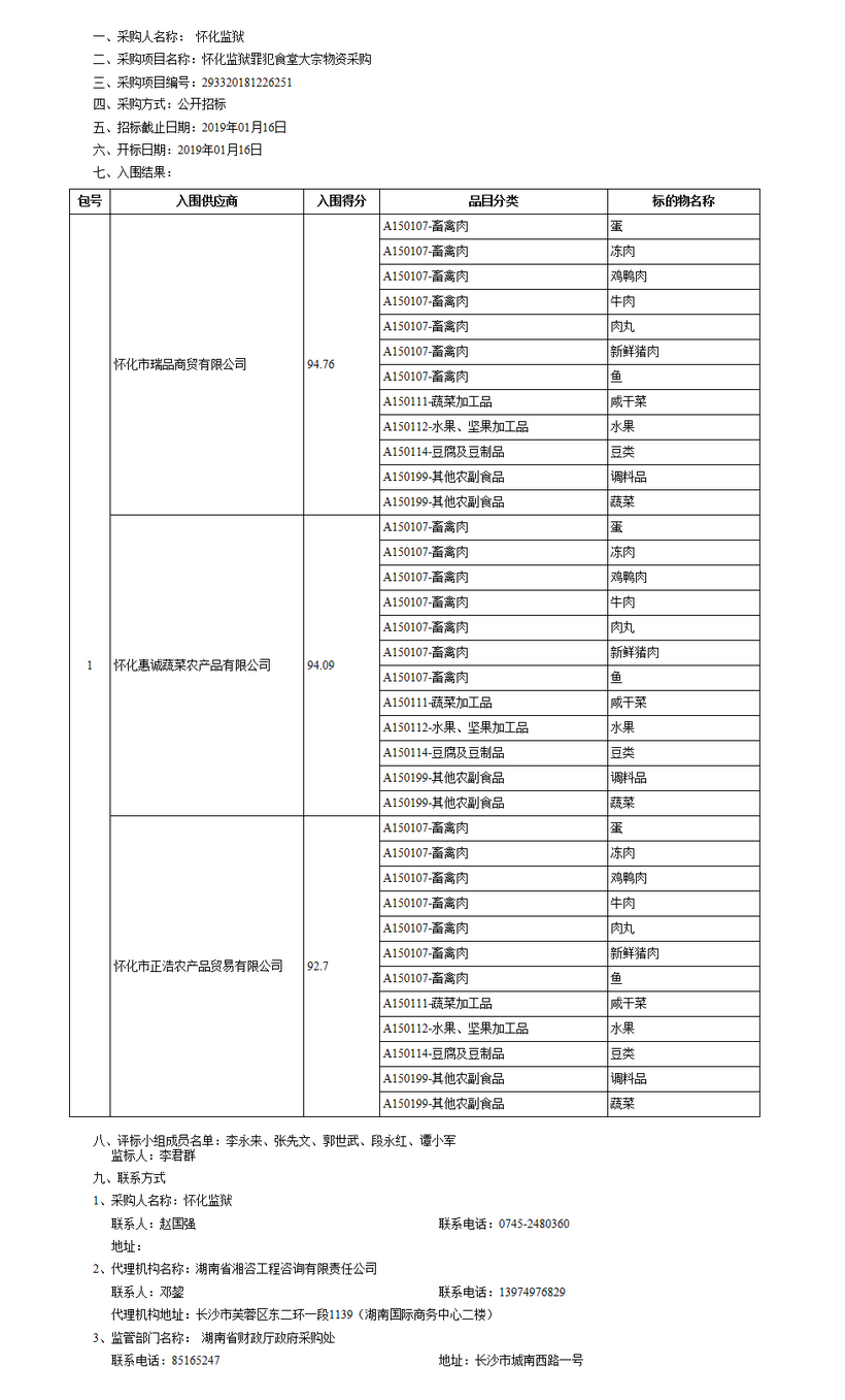 懷化監(jiān)獄罪犯食堂大宗物資采購(gòu)定點(diǎn)供應(yīng)商入圍中標(biāo)公告