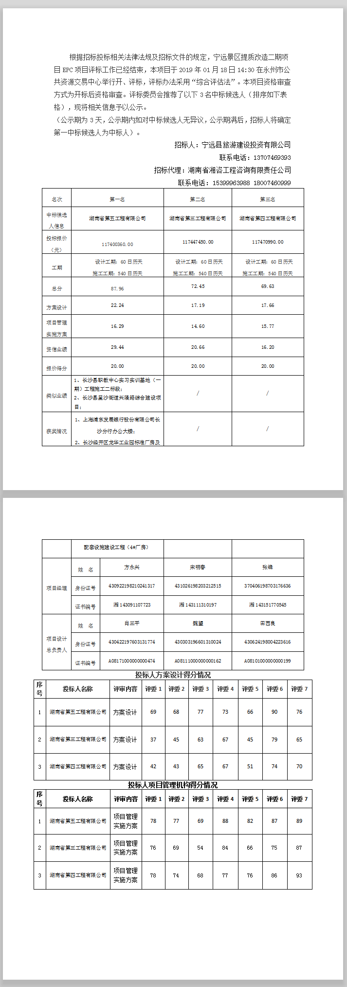 寧遠(yuǎn)景區(qū)提質(zhì)改造二期項(xiàng)目EPC項(xiàng)目中標(biāo)候選人公示