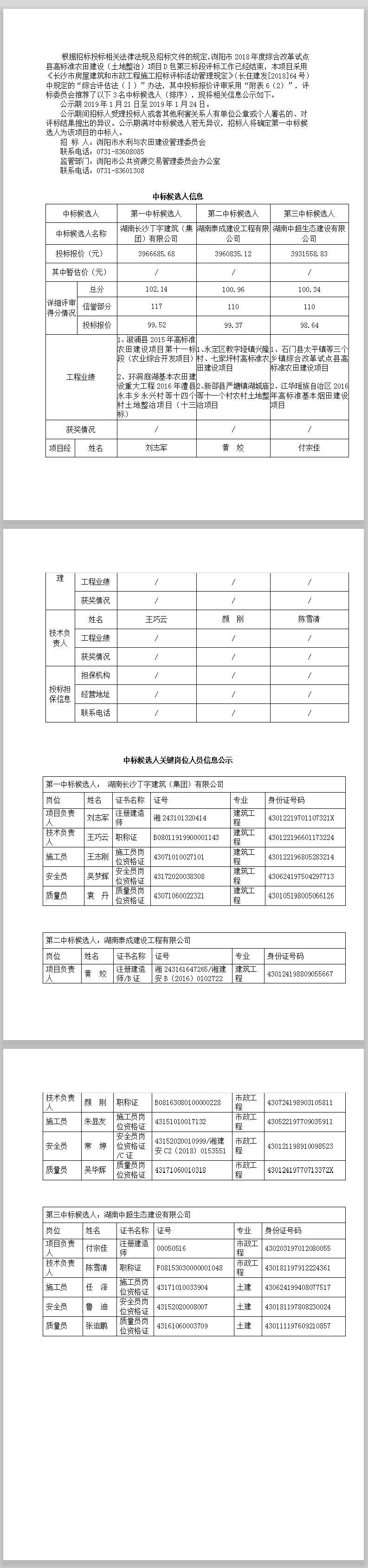 瀏陽市2018年度綜合改革試點縣高標(biāo)準(zhǔn)農(nóng)田建設(shè)(土地整治)項目D包第三標(biāo)段中標(biāo)候選人公示