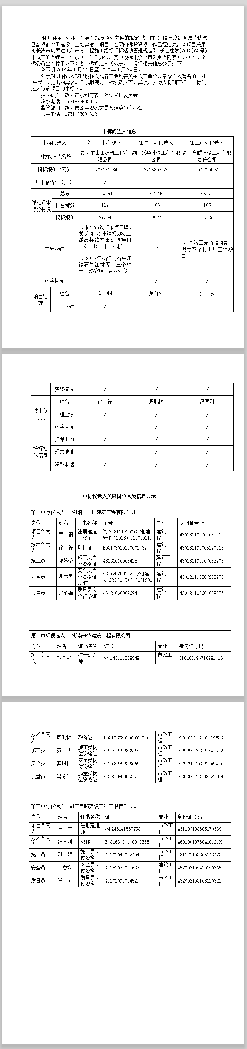 瀏陽市2018年度綜合改革試點(diǎn)縣高標(biāo)準(zhǔn)農(nóng)田建設(shè)(土地整治)項(xiàng)目D包第四標(biāo)段 中標(biāo)候選人公示