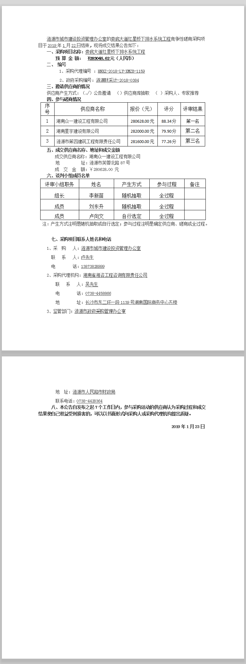 婁底大道紅星橋下排水系統(tǒng)工程 競(jìng)爭(zhēng)性磋商成交結(jié)果公告