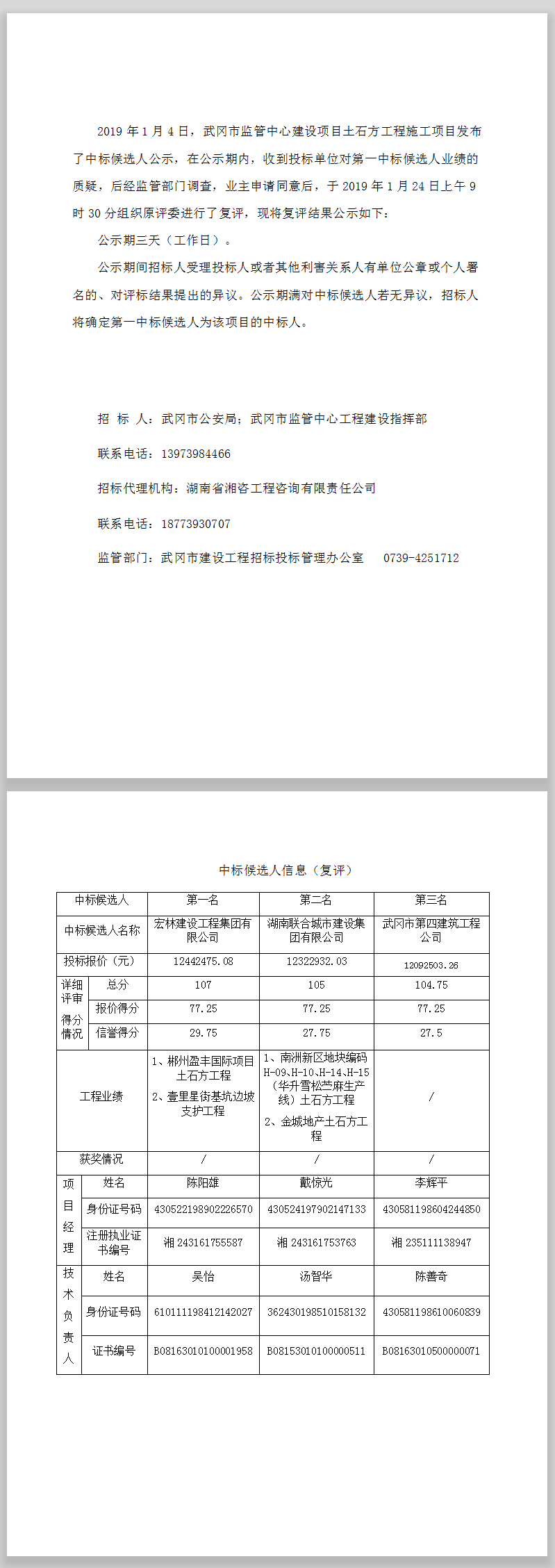 武岡市監(jiān)管中心建設項目土石方工程施工中標候選人公示(復評)