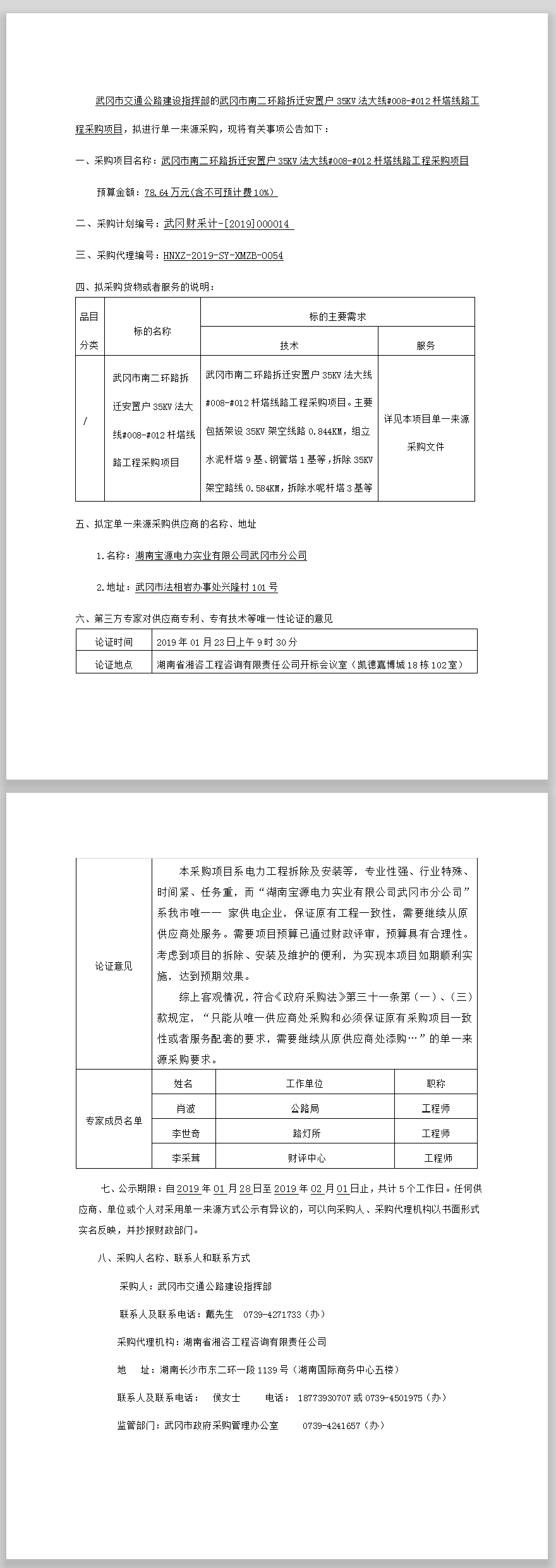 武岡市南二環(huán)路拆遷安置戶35KV法大線#008—#012桿塔線路工程采購項(xiàng)目單一來源采購公示