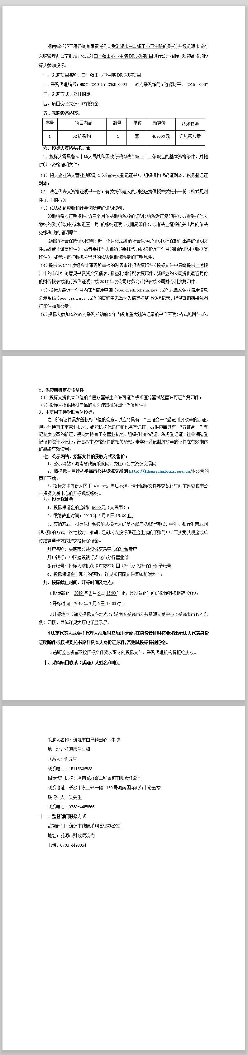 白馬鎮(zhèn)田心衛(wèi)生院DR采購項(xiàng)目招標(biāo)公告