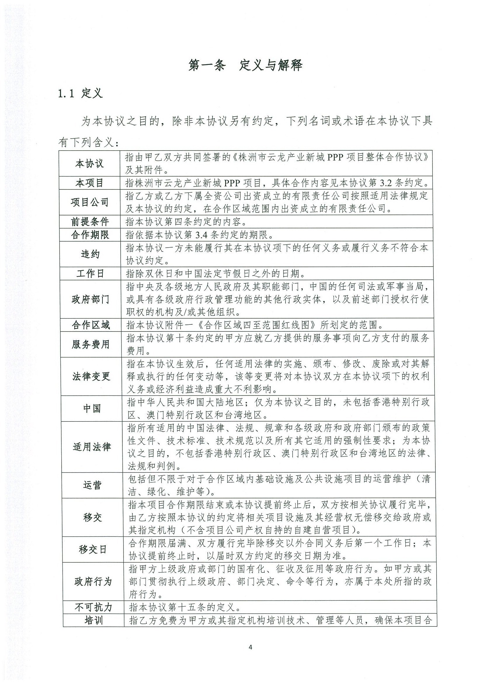 株洲云龍產(chǎn)業(yè)新城PPP項目合同公示