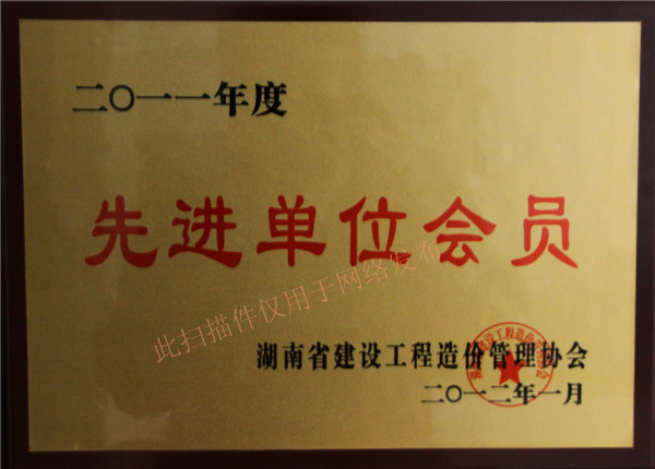 熱烈慶祝我司榮獲湖南省造價工程管理協(xié)會2011年度先進(jìn)單位會員