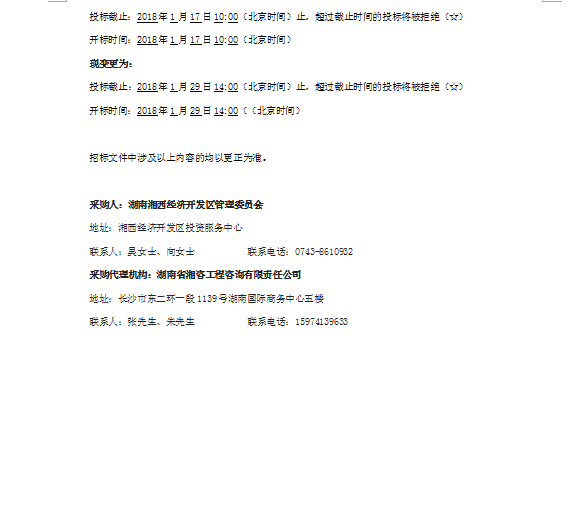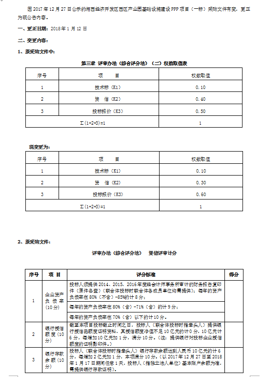 湘西經(jīng)濟(jì)開發(fā)區(qū)西區(qū)產(chǎn)業(yè)園基礎(chǔ)設(shè)施建設(shè)PPP項(xiàng)目(一標(biāo))更正公告