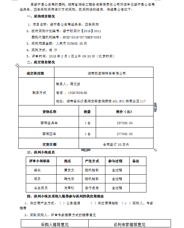 綏寧縣公安局運(yùn)兵車、囚車采購成交公告