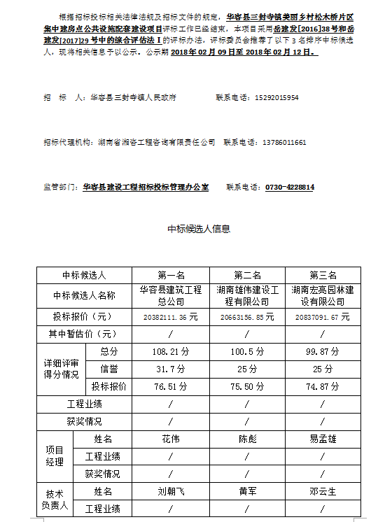華容縣三封寺鎮(zhèn)美麗鄉(xiāng)村松木橋片區(qū)集中建房點(diǎn)公共設(shè)施配套建設(shè)項(xiàng)目中標(biāo)候選人公示