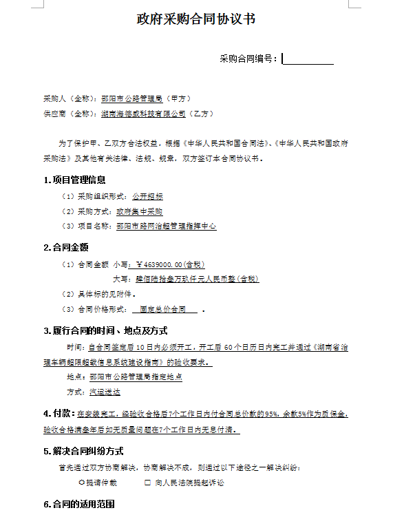 邵陽(yáng)市路網(wǎng)治超管理指揮中心合同公示
