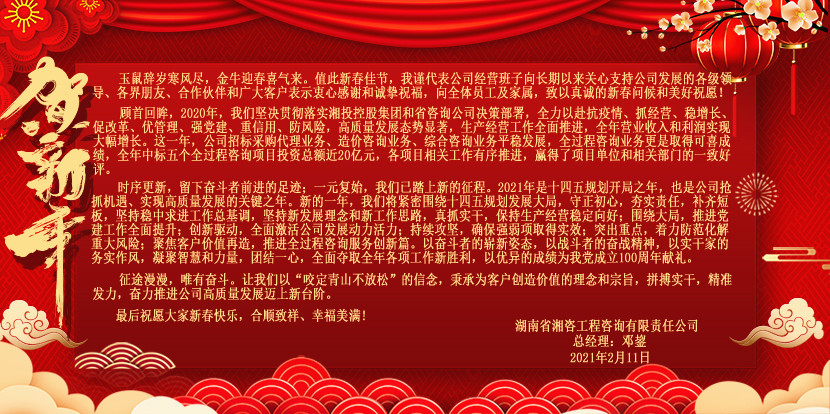 湖南省湘咨工程咨詢有限責(zé)任公司2021年新春賀詞