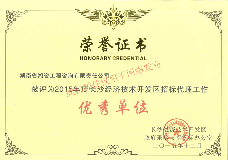【喜訊】熱烈慶祝我司榮獲2015年度長沙市經(jīng)濟技術(shù)開發(fā)區(qū)招標代理工作優(yōu)秀單位