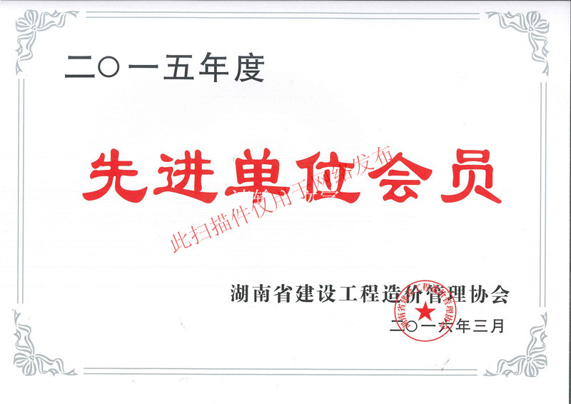 【喜訊】熱烈慶祝我司榮獲湖南省建設工程造價管理協會頒發(fā)的2015年度先進單位會員