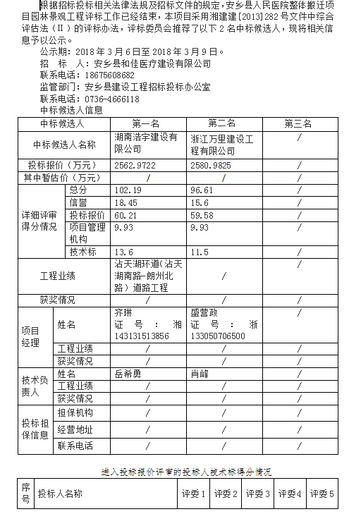 安鄉(xiāng)縣人民醫(yī)院整體搬遷項目園林景觀工程 中標候選人公示
