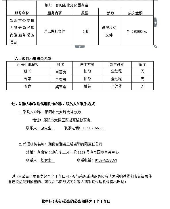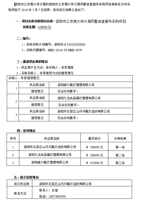 邵陽市公安局大祥分局民警食堂服務(wù)采購 競爭性談判成交公告