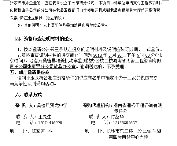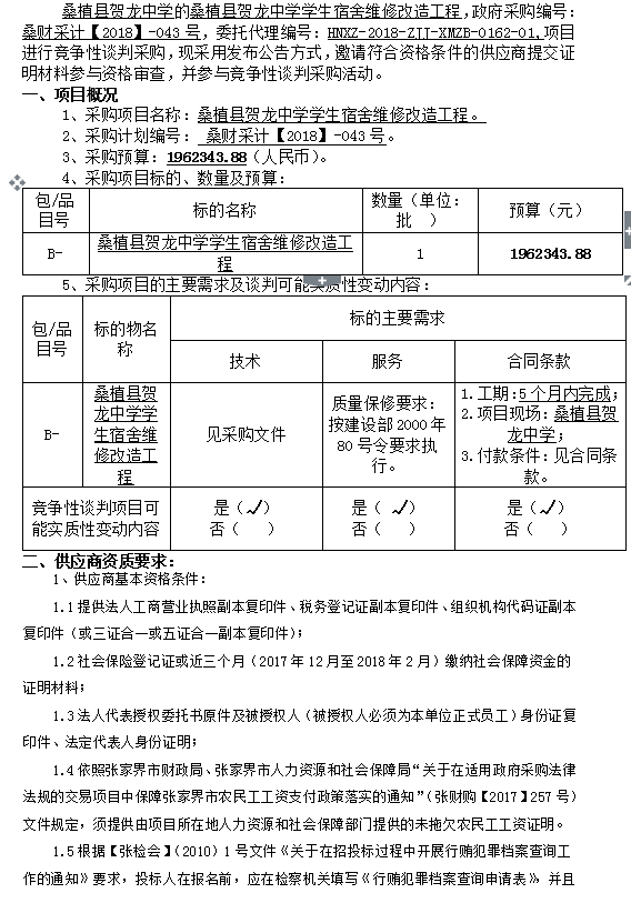 桑植縣賀龍中學學生宿舍維修改造工程 競爭性談判邀請公告