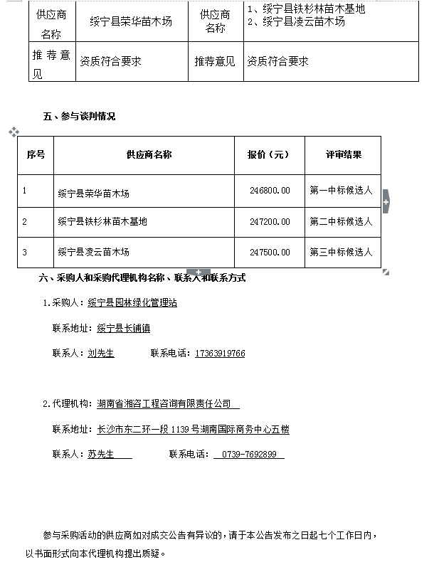 綏寧縣縣城街道綠化補栽項目談判成交公告