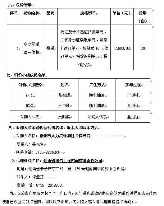 郴州市人社局公共就業(yè)服務(wù)掃描一體機詢價采購成交結(jié)果公告