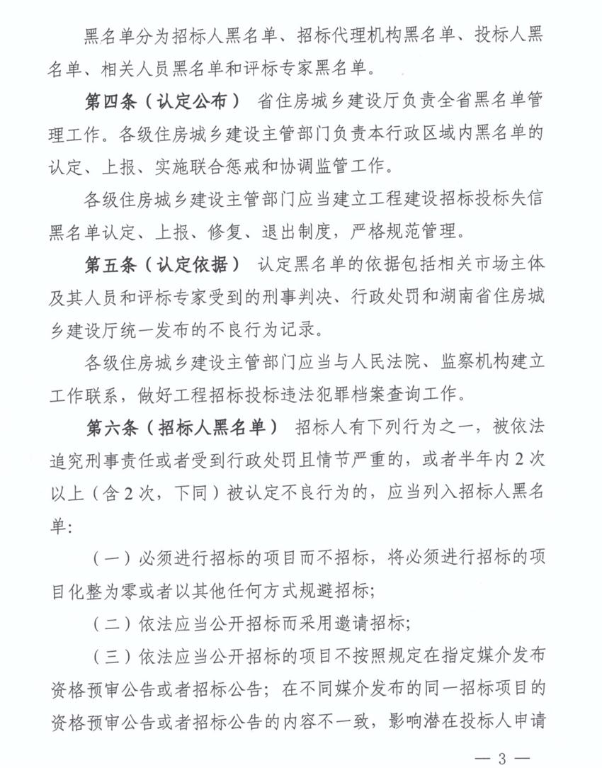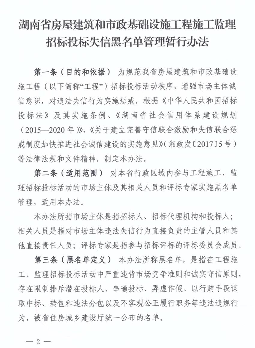 湖南省住房和城鄉(xiāng)建設(shè)廳關(guān)于印發(fā)《湖南省房屋建筑和市政基礎(chǔ)設(shè)施工程施工監(jiān)理招標(biāo)投標(biāo)失信黑名單管理暫行辦法》的通知